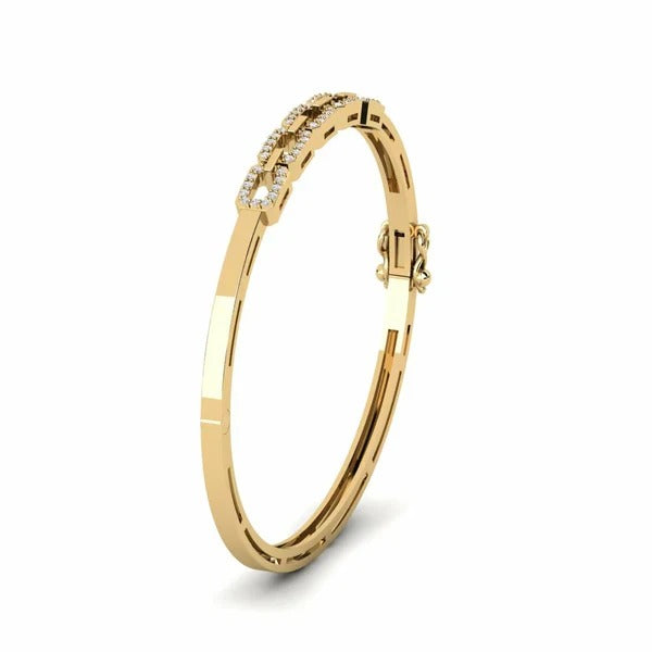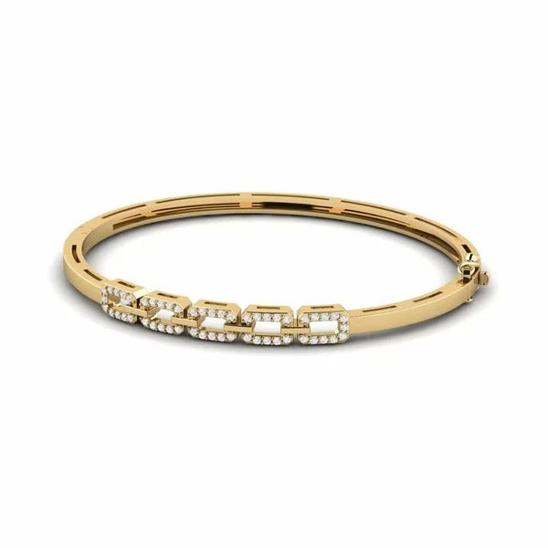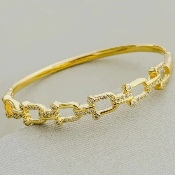 A premium gold plated link chain bangle bracelet for women and girls, crafted with sparkling cubic zirconia stones and secure clasp lock. Perfect for festive wear, parties, weddings, or daily elegance.
