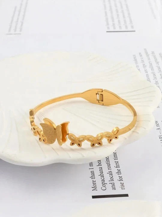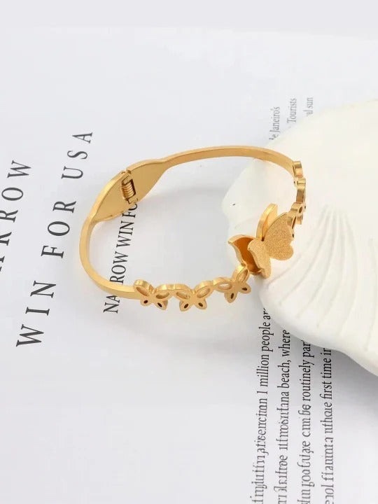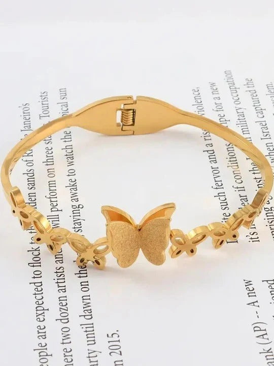 Gracefully designed, this golden butterfly kada bracelet for women and girls adds a touch of elegance to any outfit. Lightweight, durable, and stylish, it’s perfect for daily wear or special occasions.