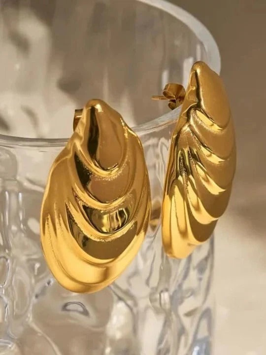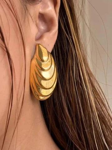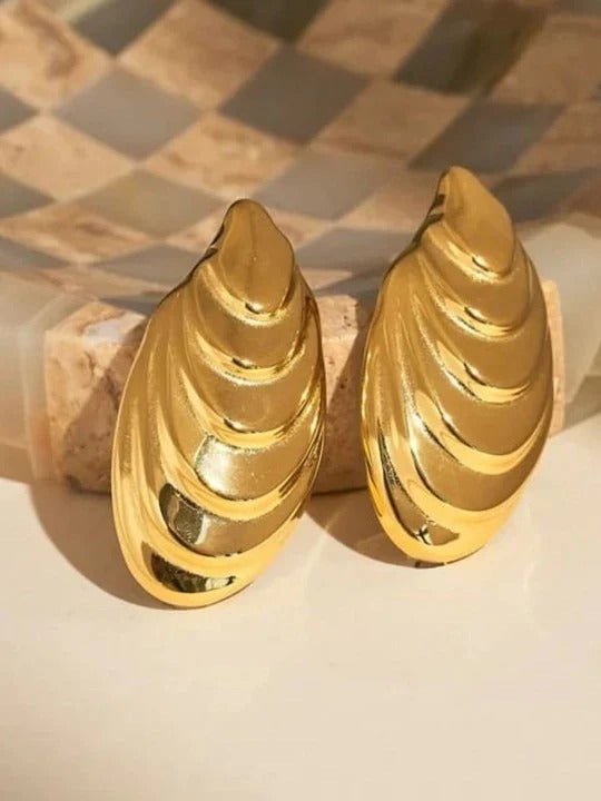 Elevate your everyday style with our Golden Wave Shell Metallic Drop Earrings for Women, designed to make a bold yet elegant statement. Crafted from premium stainless steel, these modern gold earrings are anti tarnish and waterproof, ensuring long-lasting shine and durability. The unique gold shell earrings design is inspired by ocean waves, making them a timeless accessory for both casual and formal wear.