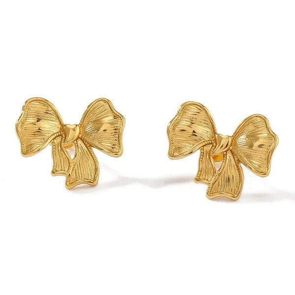 These waterproof earrings blend playful elegance with high-end quality. The detailed gold bow earrings design adds a graceful touch to any outfit, making them perfect for gifting or adding to your personal collection.